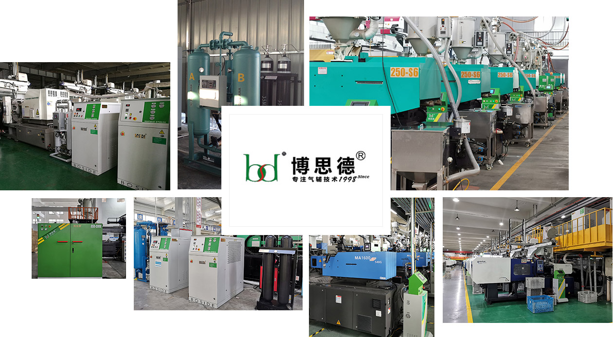 浙江博思德( BOSIDE) 機(jī)械有限公司 是專業(yè)從事氮?dú)廨o助注塑成型設(shè)備的生產(chǎn)、銷售;氣注塑工藝及氣模具的研發(fā)、應(yīng)用;高壓氣體設(shè)備的生產(chǎn)、銷售及國(guó)外品牌代理等業(yè)務(wù)。主要經(jīng)營(yíng):氮?dú)獍l(fā)生器、高壓壓縮機(jī)、氮?dú)饪刂葡到y(tǒng)、氮?dú)饽>咧圃臁⒆⑺艹尚蜕a(chǎn)等五大事業(yè)項(xiàng)目。我們有近二十年的氮?dú)廨o助注塑成型(氣體輔助注塑成型)的生產(chǎn)及技術(shù)經(jīng)驗(yàn)。